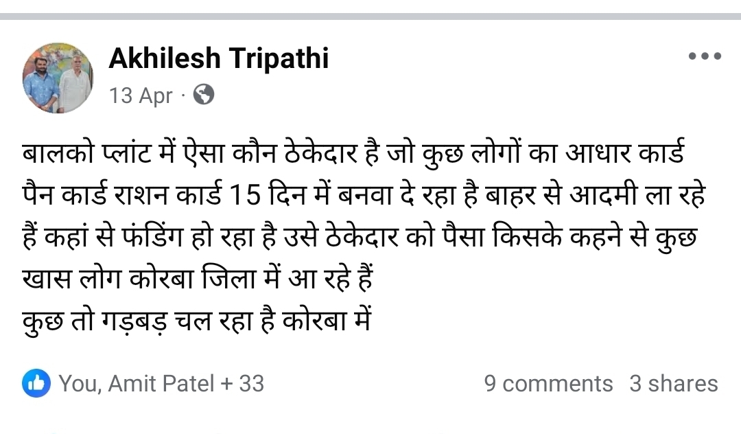 फर्जी आधार-पैन कार्ड, भाग-01 : कलेक्टर चलाएंगे हंटर.. लैंको, बालको, एनटीपीसी और.. संवेदनशील राष्ट्रीय सुरक्षा से जुड़े त्रिपाठी के आरोप गंभीर